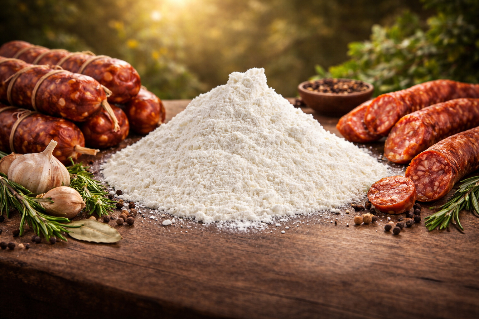 Mezcla de aditivos sin especias y sin pimentón. DOSIS: 50 g/kg de masa. ALÉRGENOS: LACTEOS. INGREDIENTES: Azúcar (Dextrosa), Dextrina blanca, Sal, LECHE en polvo, Estabilizadores (E-450 y E-452), Proteínas de LECHE y de guisante y Conservador (E-252).