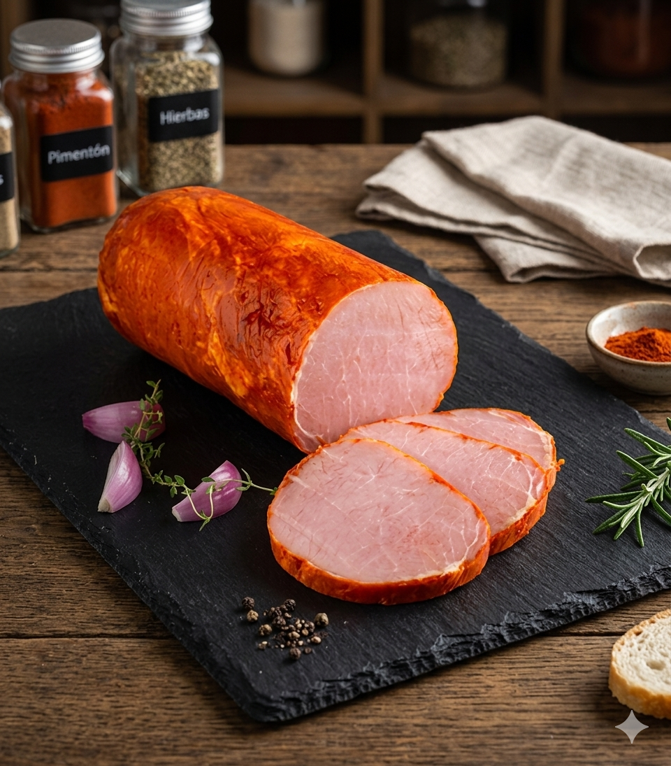 Mezcla de Pimentón, Especias y Aditivos para la elaboración de Lomo Embuchado. DOSIS: 50 g/kg de masa. NO CONTIENE ALÉRGENOS. INGREDIENTES: Sal, Dextrosa, Pimentón y Especias, Antioxidante (E-301) y Conservador (E-252).